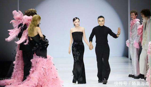 她走秀的时候,那种高级感是有迹可循的。她的穿着打扮、行为举止都经过了精心的设计。她的朋友王锋为她设计的礼服可能是最适合她的,能够很好地凸显出她的优势。他们在台上台下的互动也充满了默契,这种默契也是他们多年友情的见证。